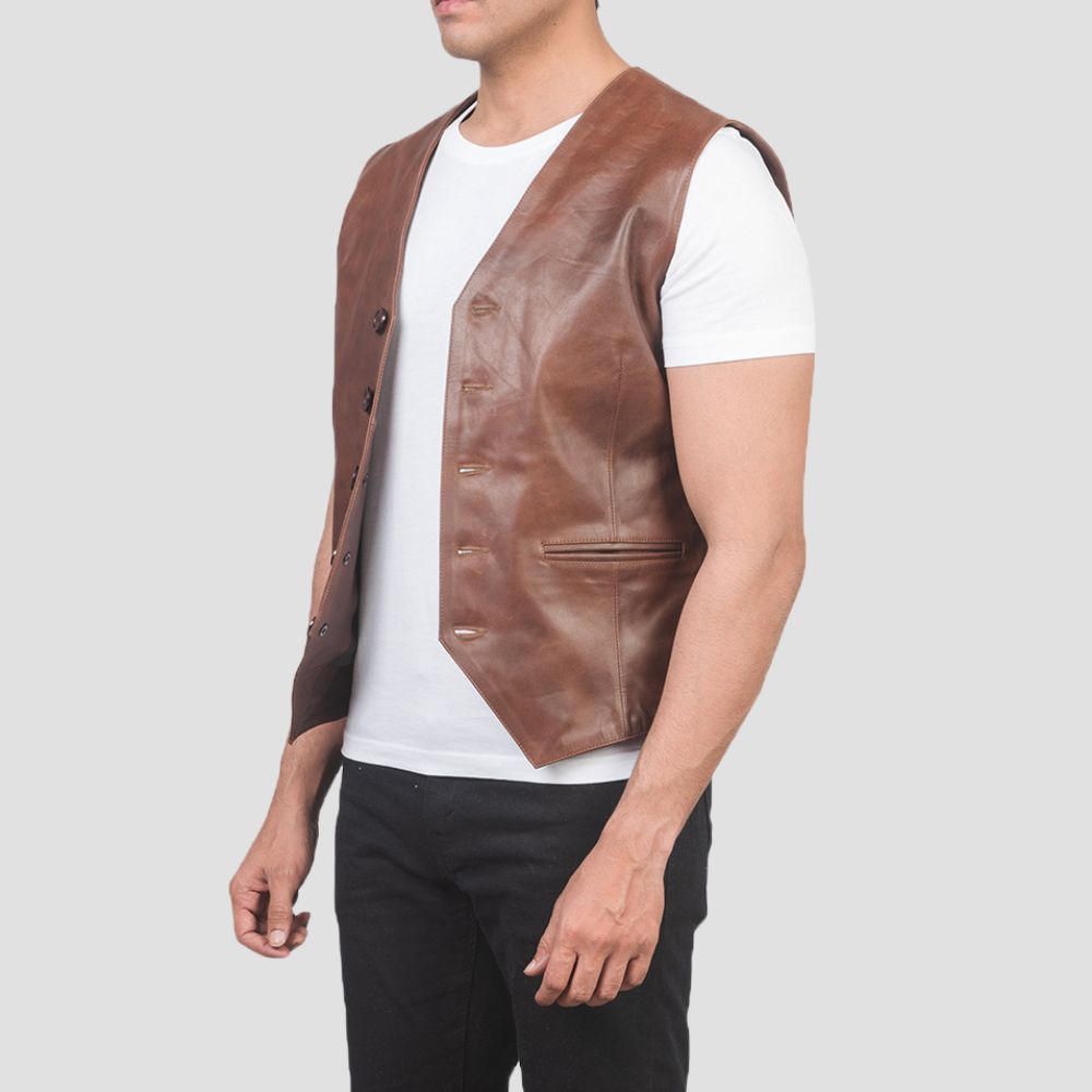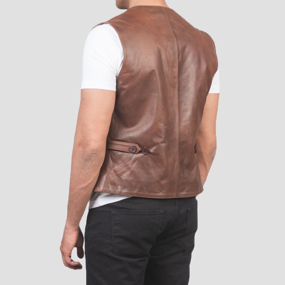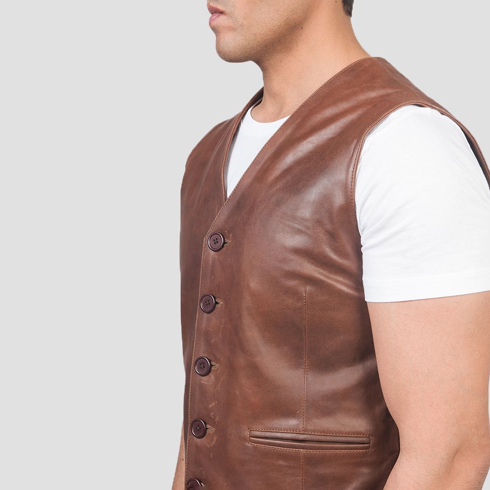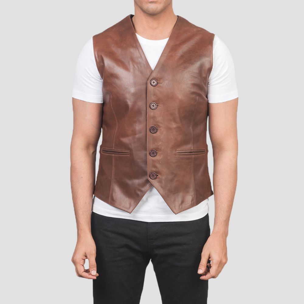 Description: Outer Shell: Real cowhide LeatherLeather Finish: Pull-upInner Shell: Quilted Polyester LiningClosure Style: 5 ButtonWaist Adjustment StrapsOutside Pockets: TwoInside Pockets:...