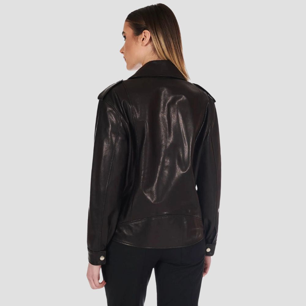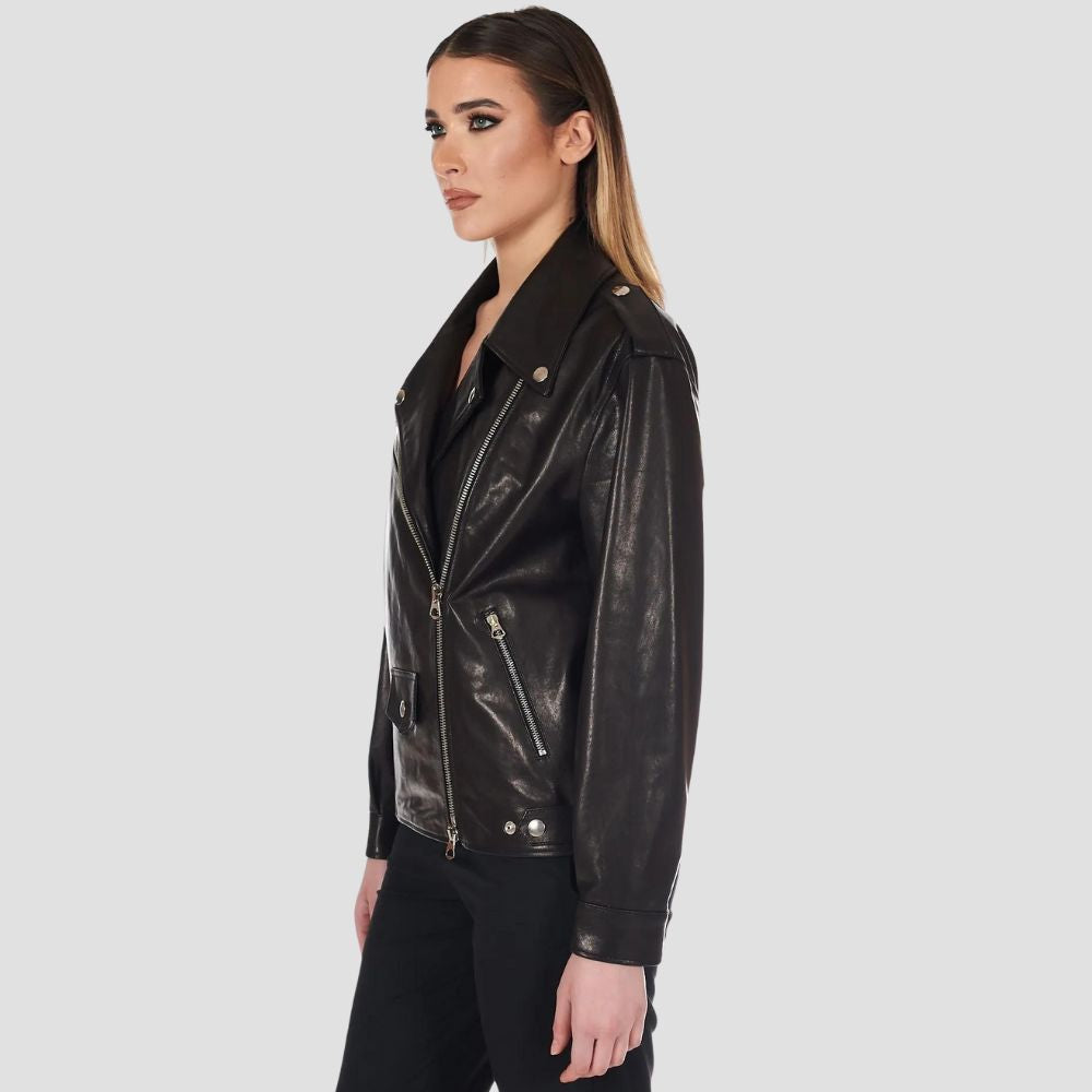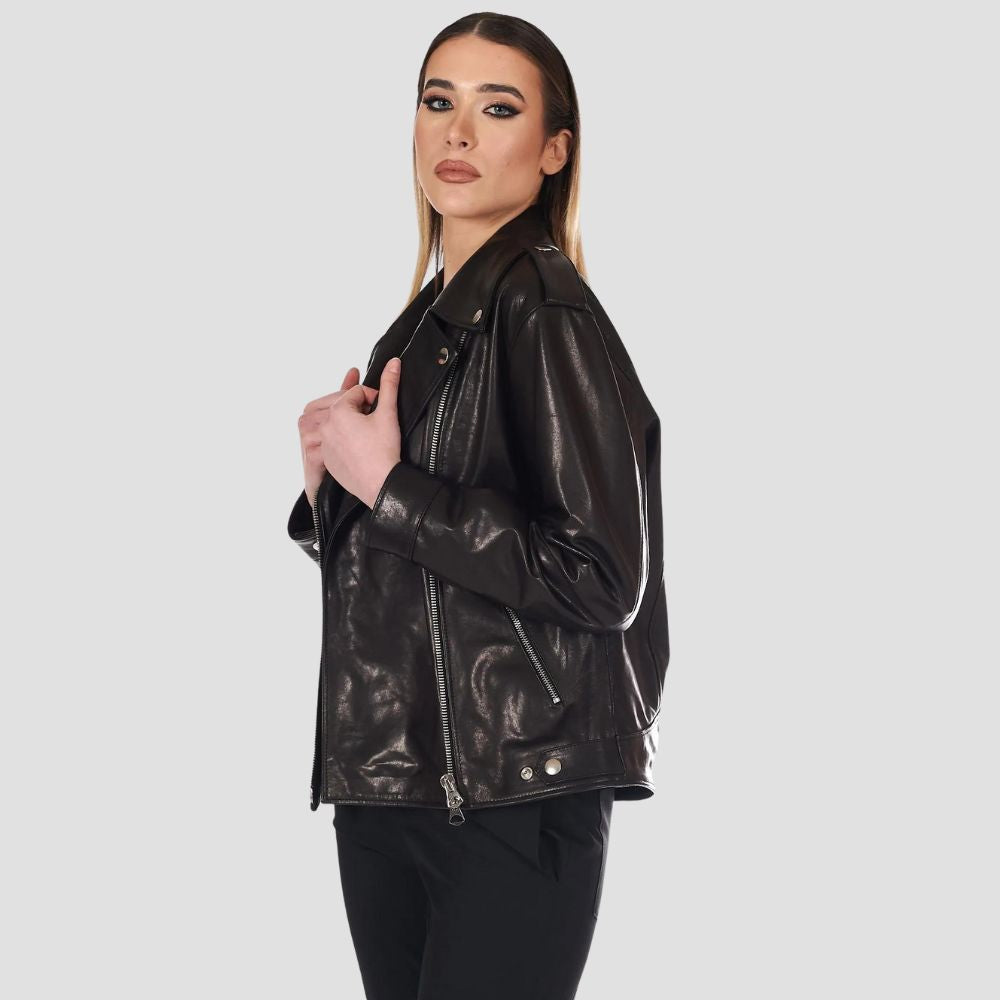 Black vintage leather biker jacket comfort fit
