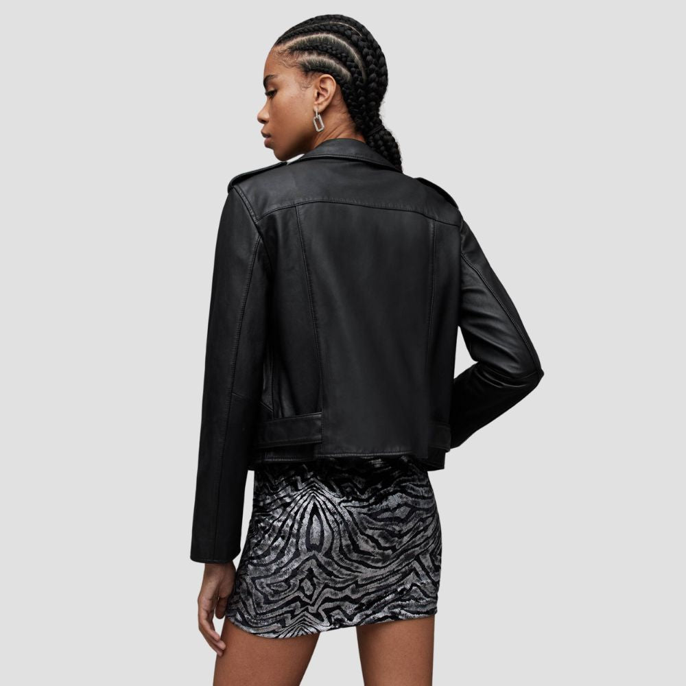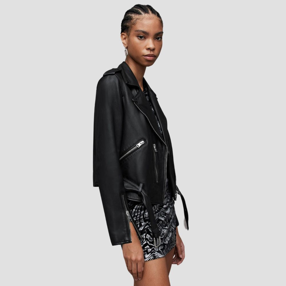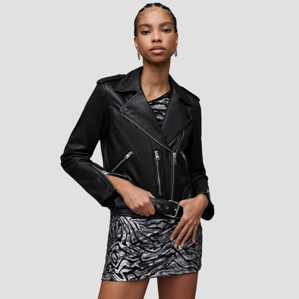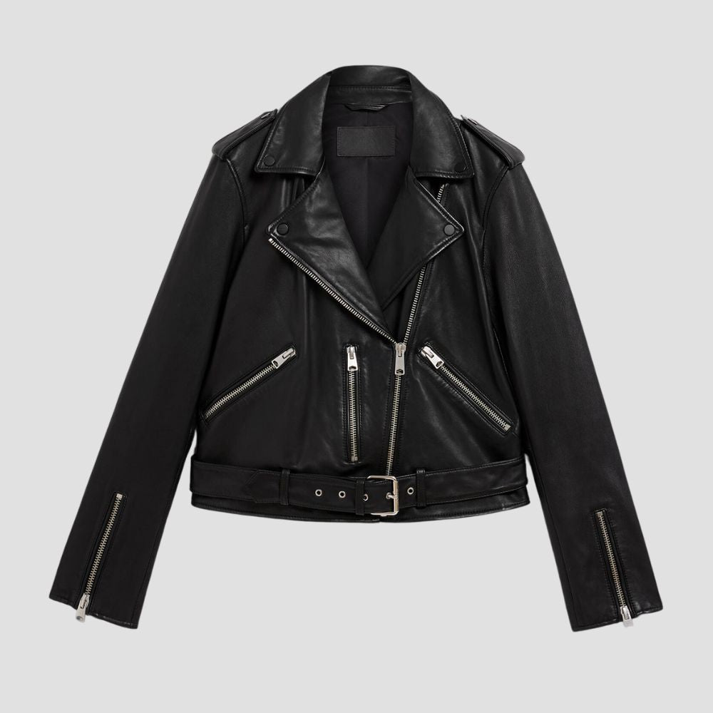 Balfern Belted Hem Leather Biker Jacket
