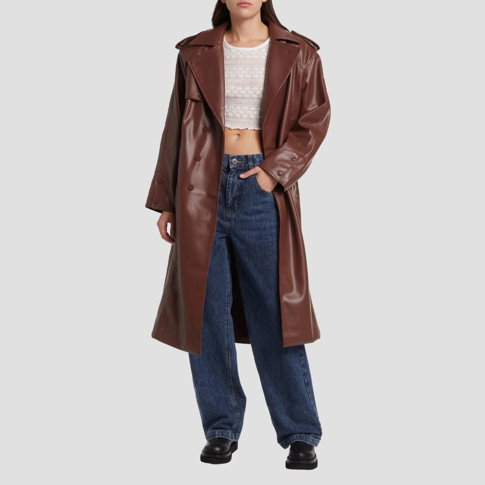 Montague Faux Leather Trench Coat