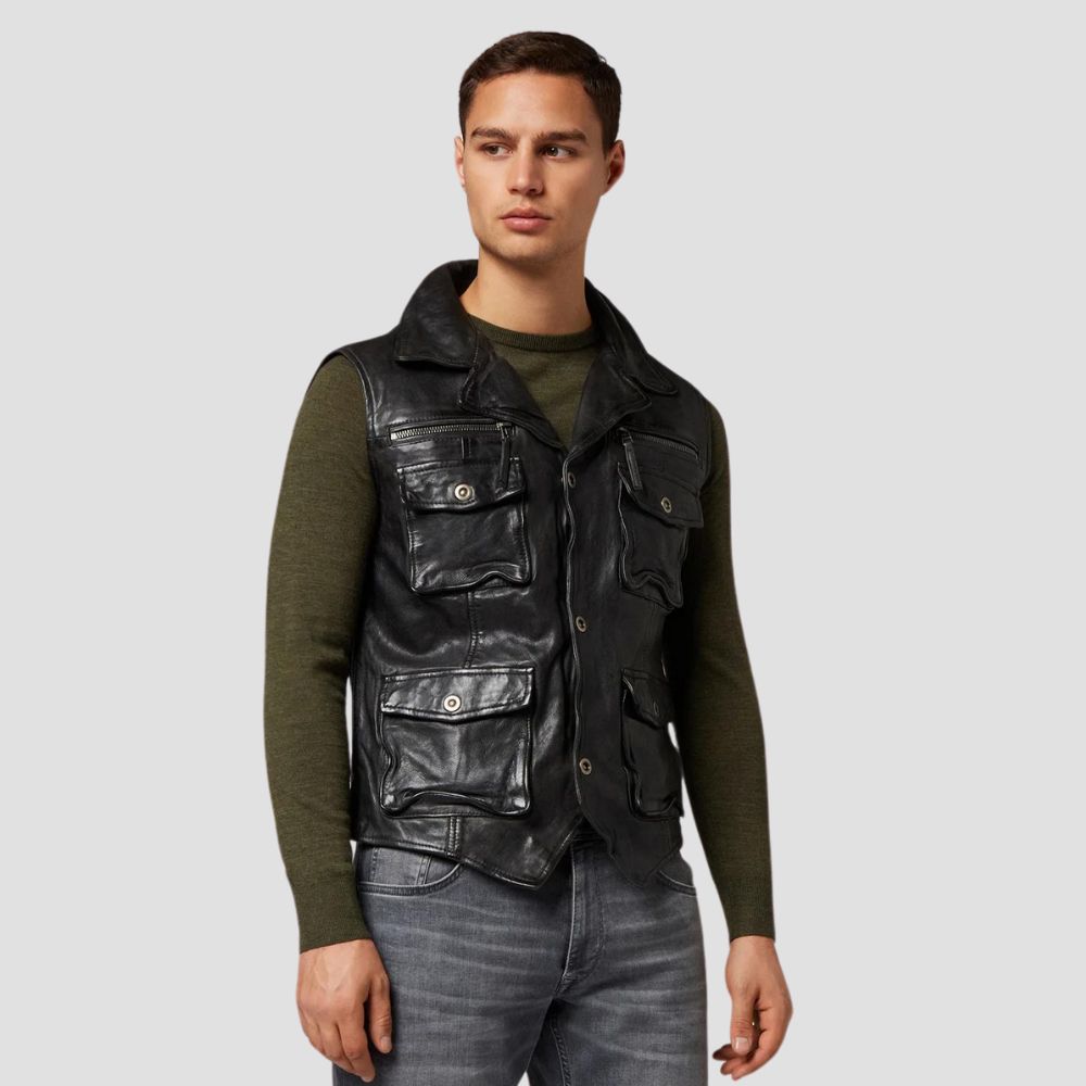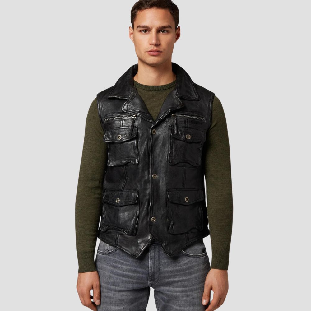 Black Leather Vest For Men