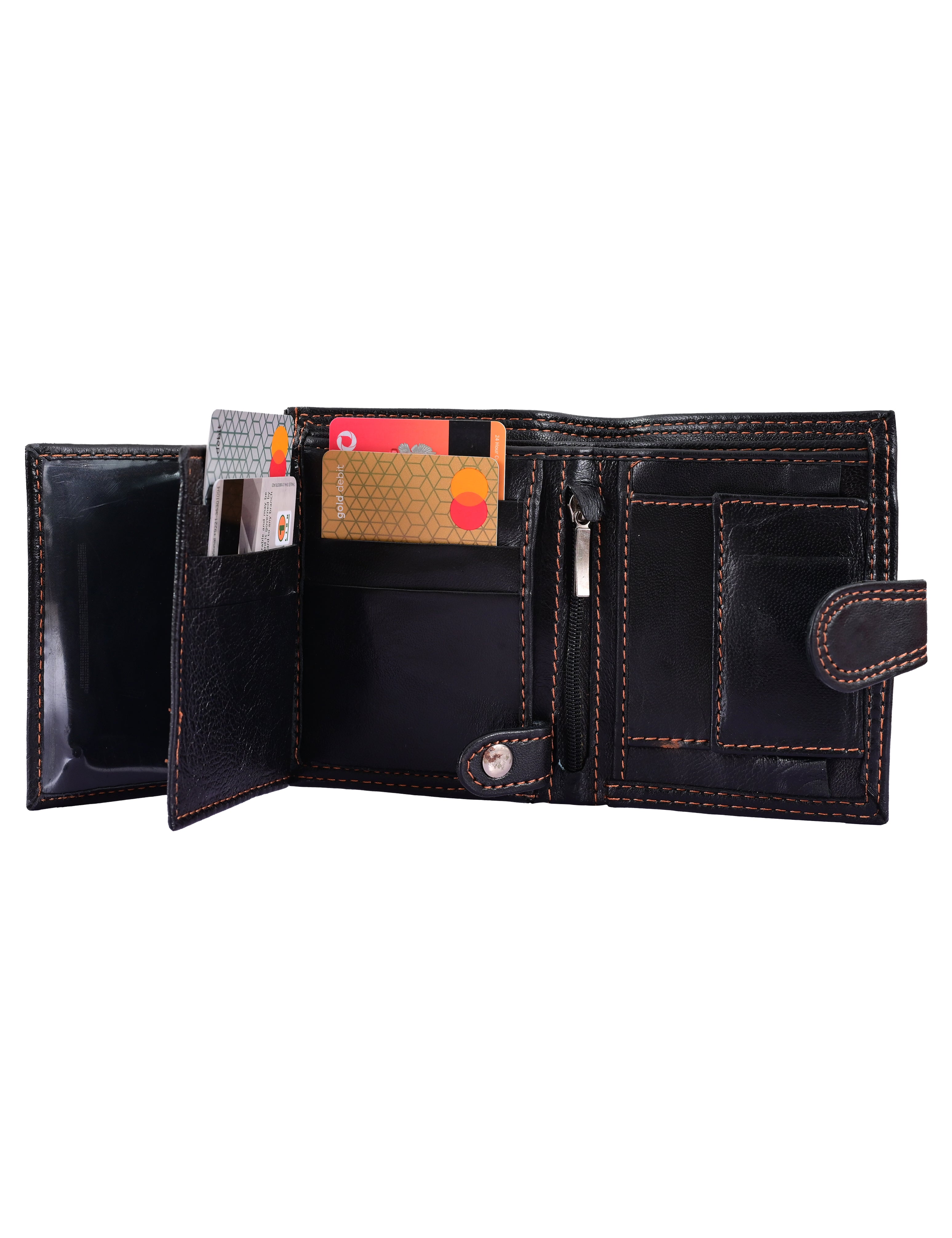 Buffalo Leather Wallet for Men – Black Bifold, 7 Compartments