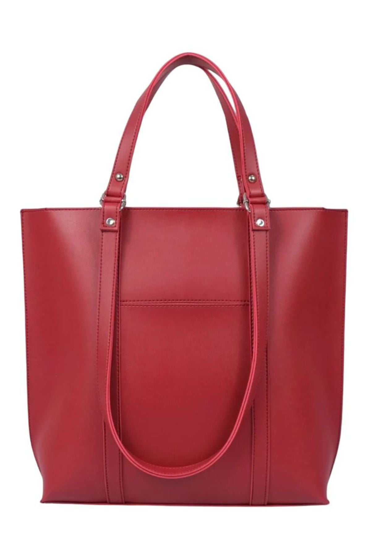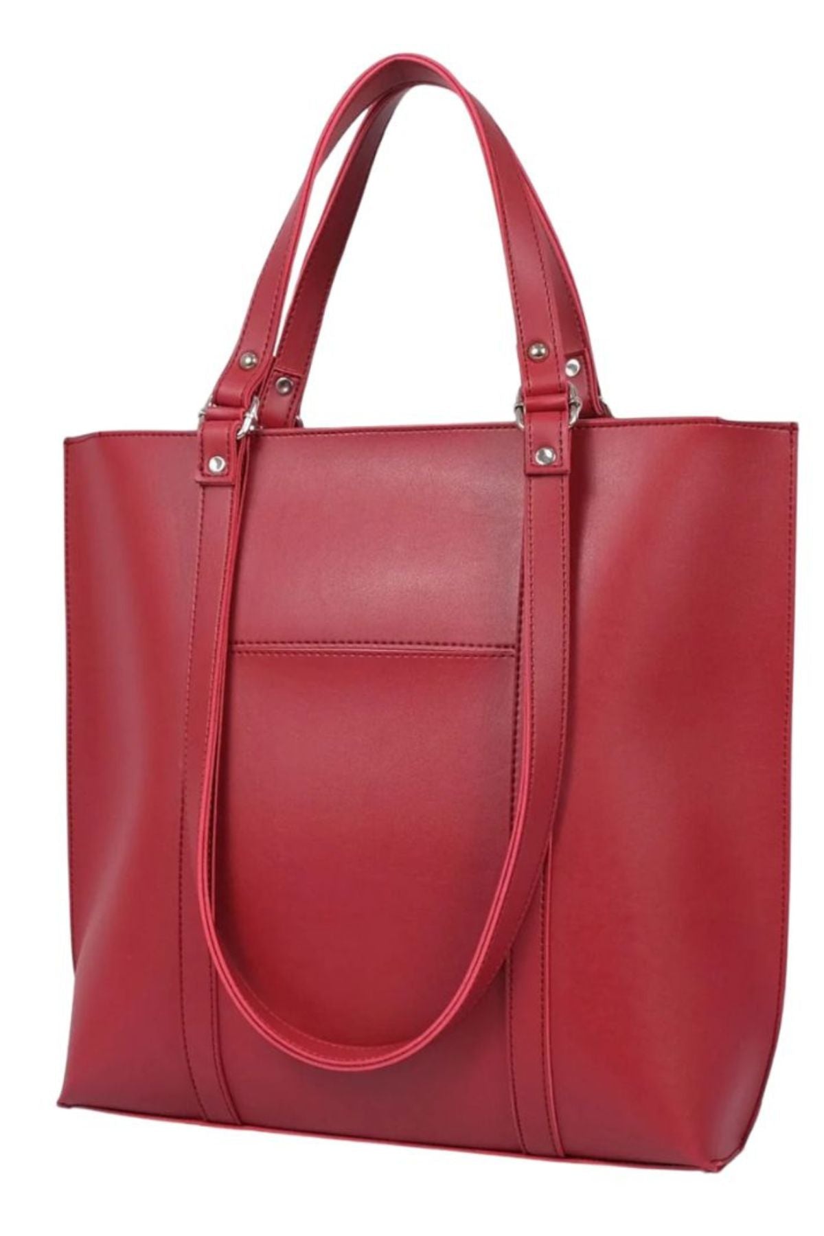 Burgundy Leather Tote Bag with Front Pocket