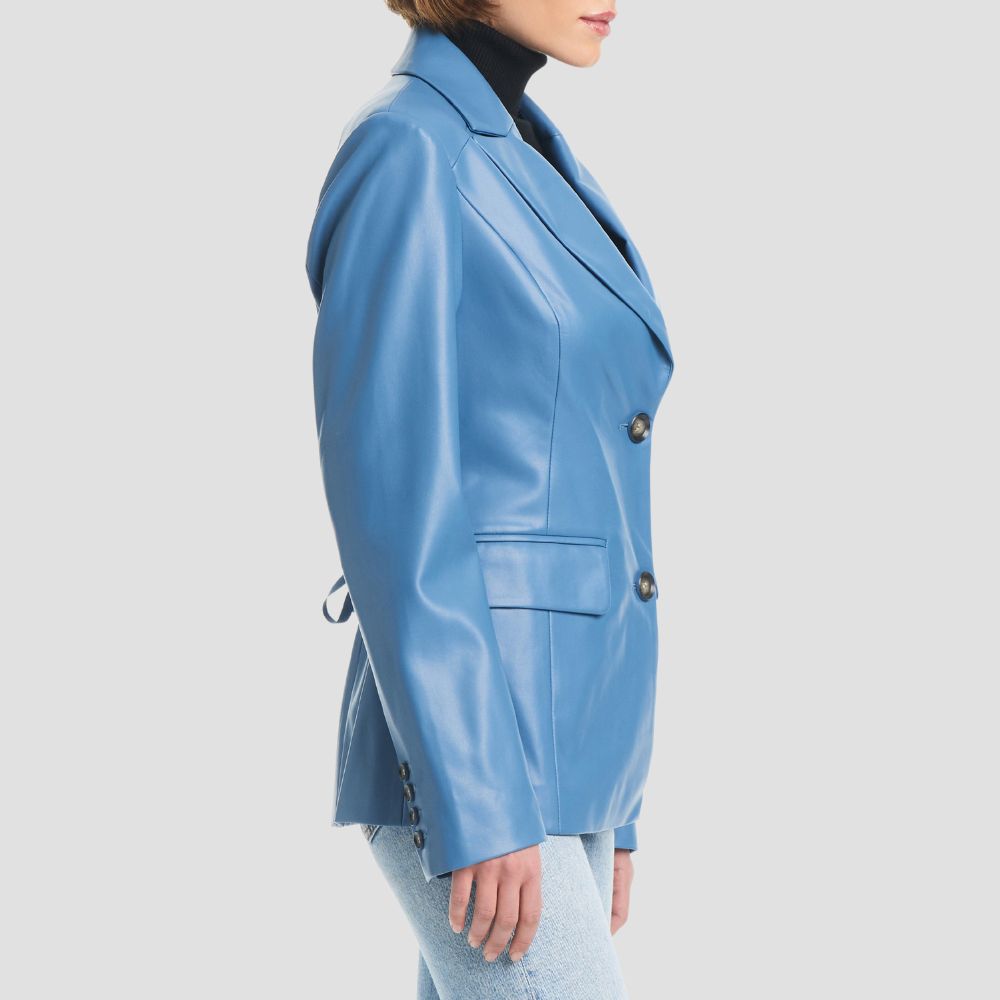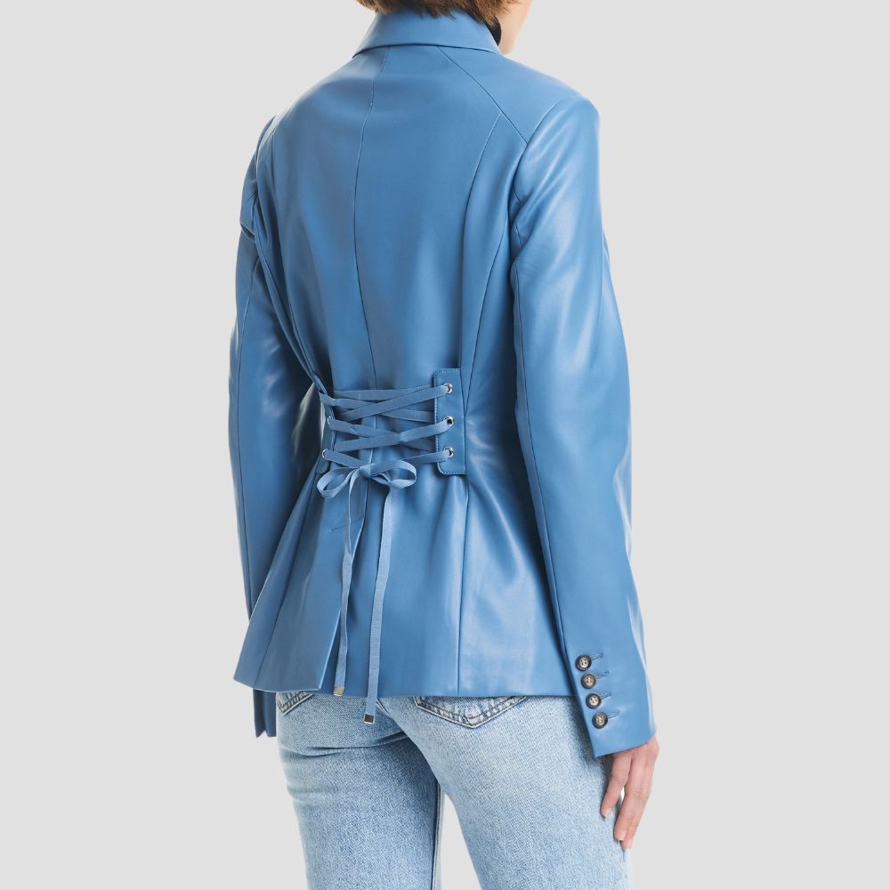 Corset Back Faux Leather Blazer