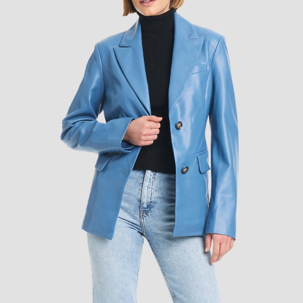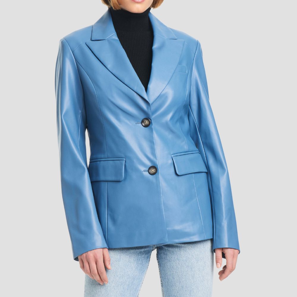 Description: A faux leather blazer brings business in the front and a party in the back for the ultimate day-to-night look....