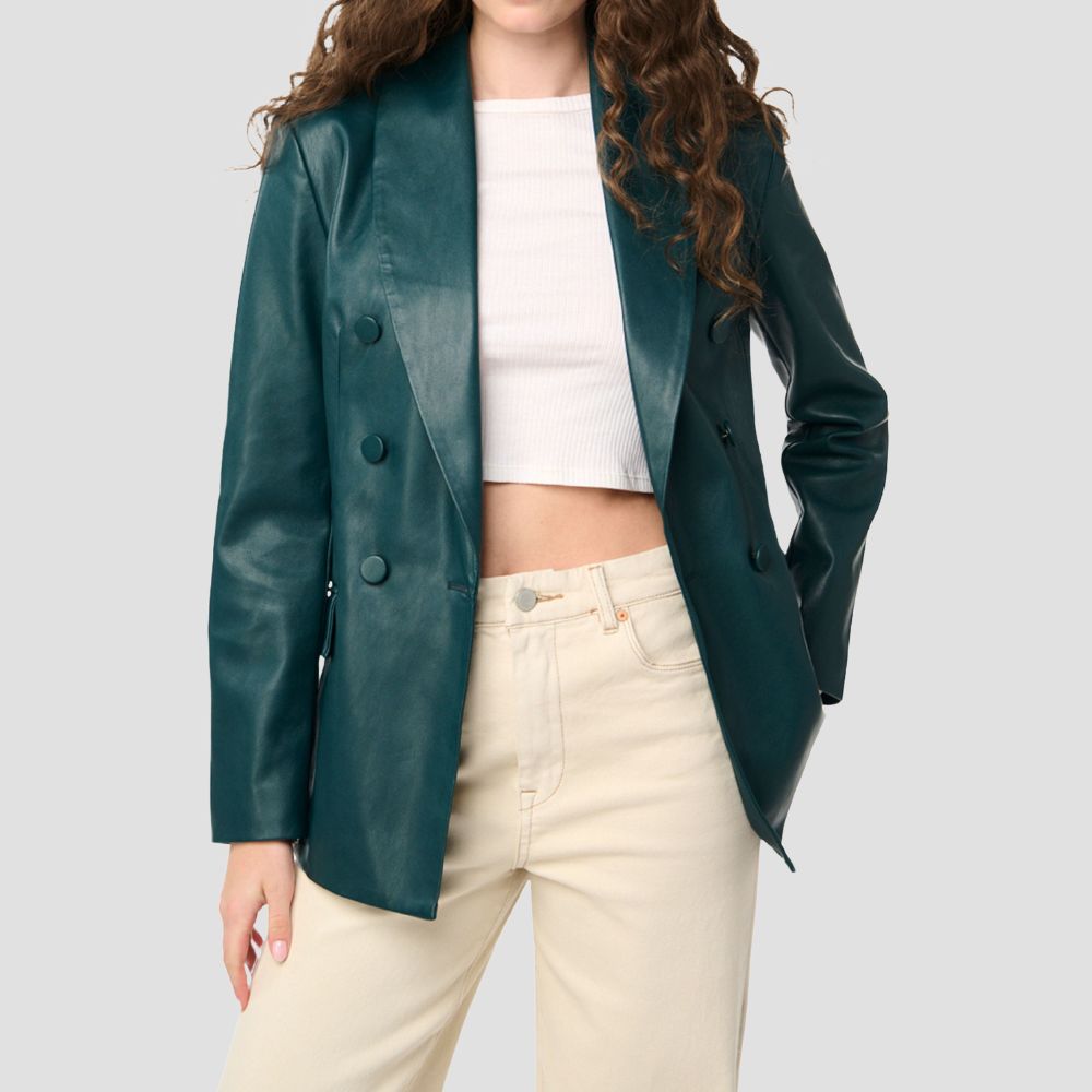 Double Breasted Faux Leather Blazer