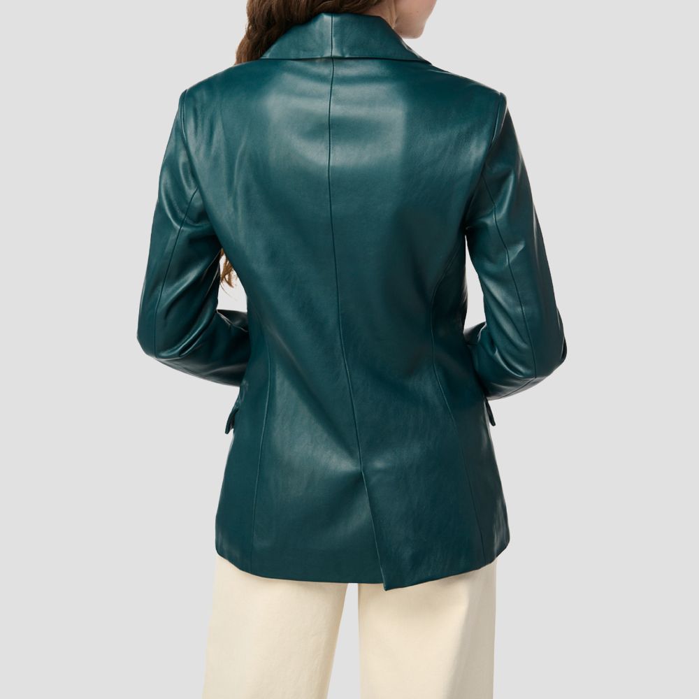 Description: Color: Green Room The traditionally professional blazer gets a glam makeover in this faux-leather version rendered in a deep emerald...