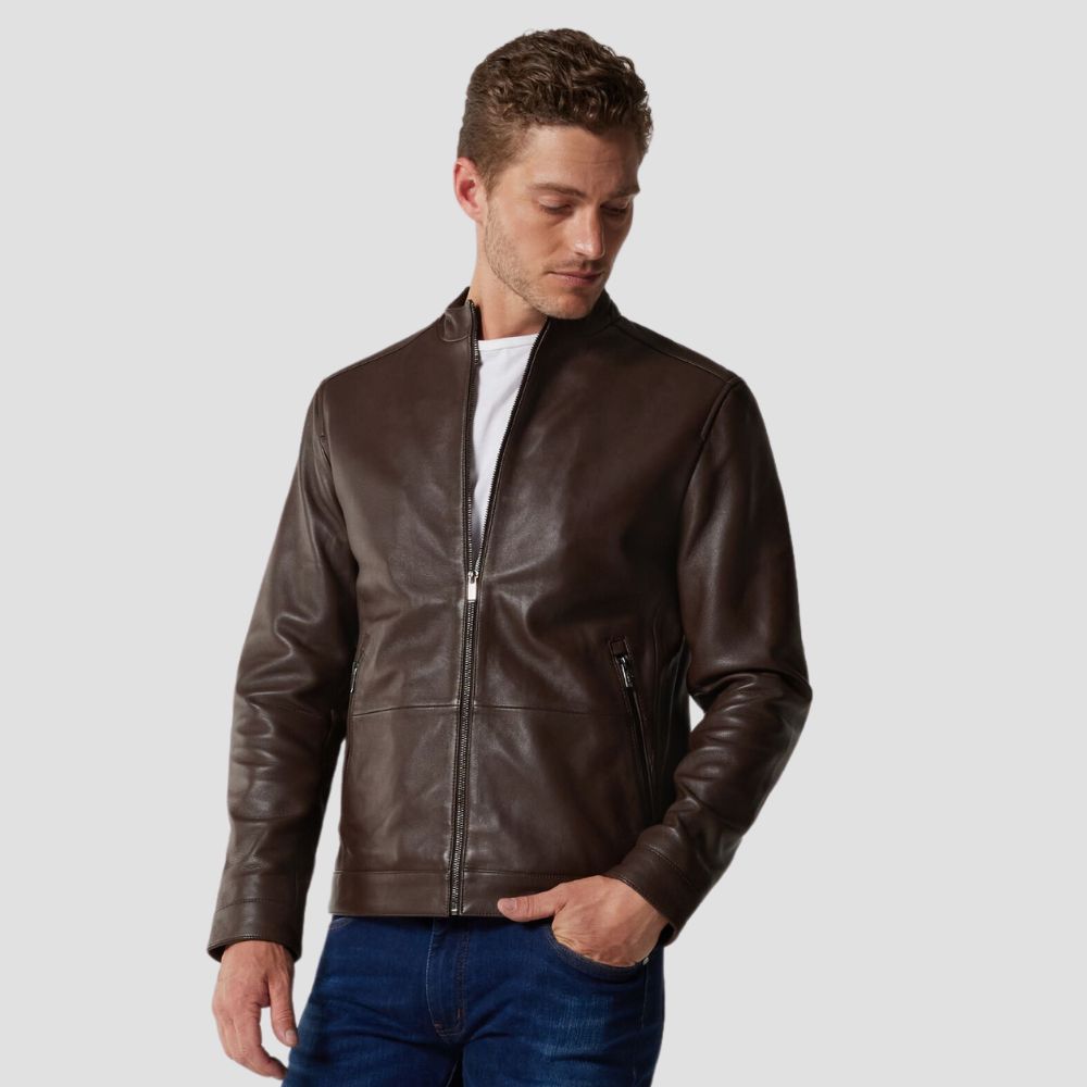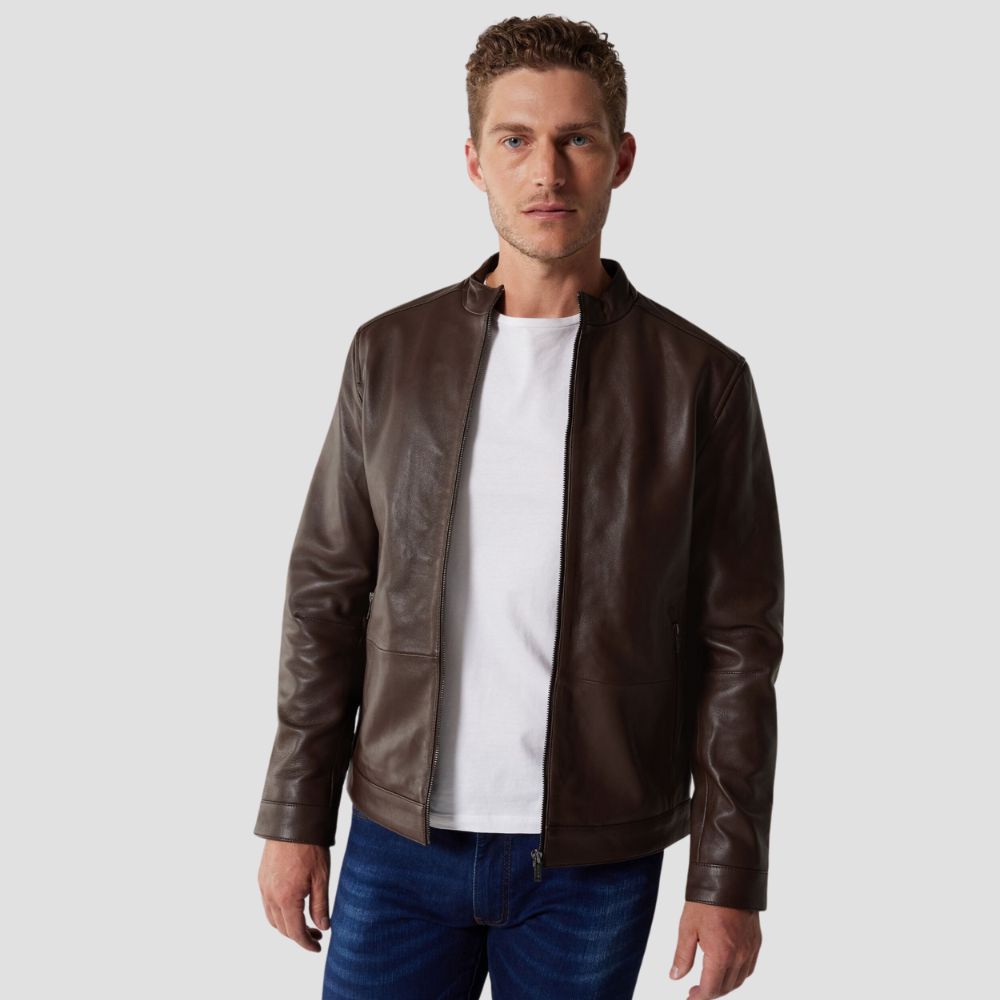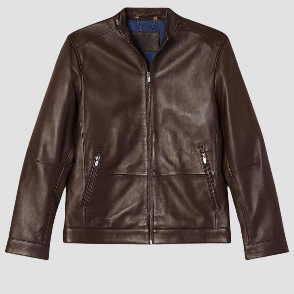 Description:Crafted from ultra-soft leather, this biker jacket looks great with a poloshirt. It features zip fastening and internal pockets. 100%...
