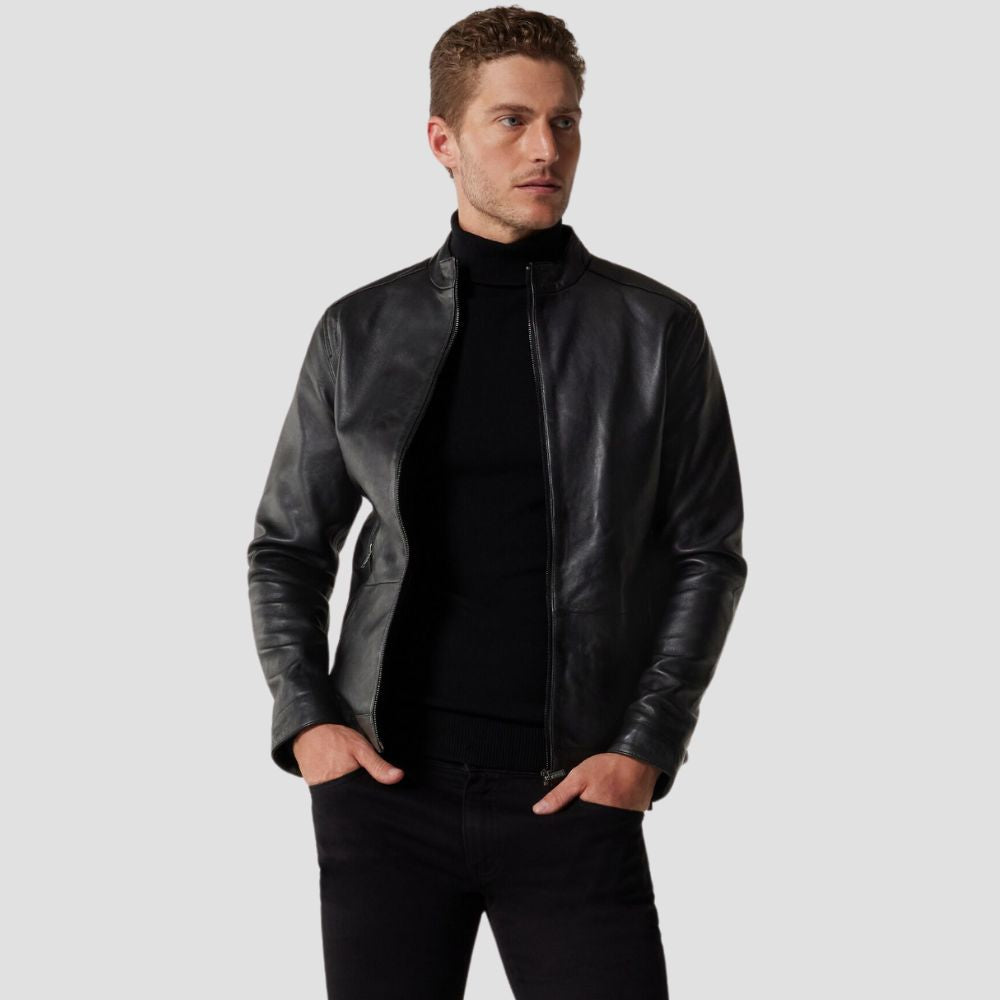 Description:Crafted from ultra-soft leather, this biker jacket looks great with a polo shirt. It features zip fastening and internal pockets. 100%...
