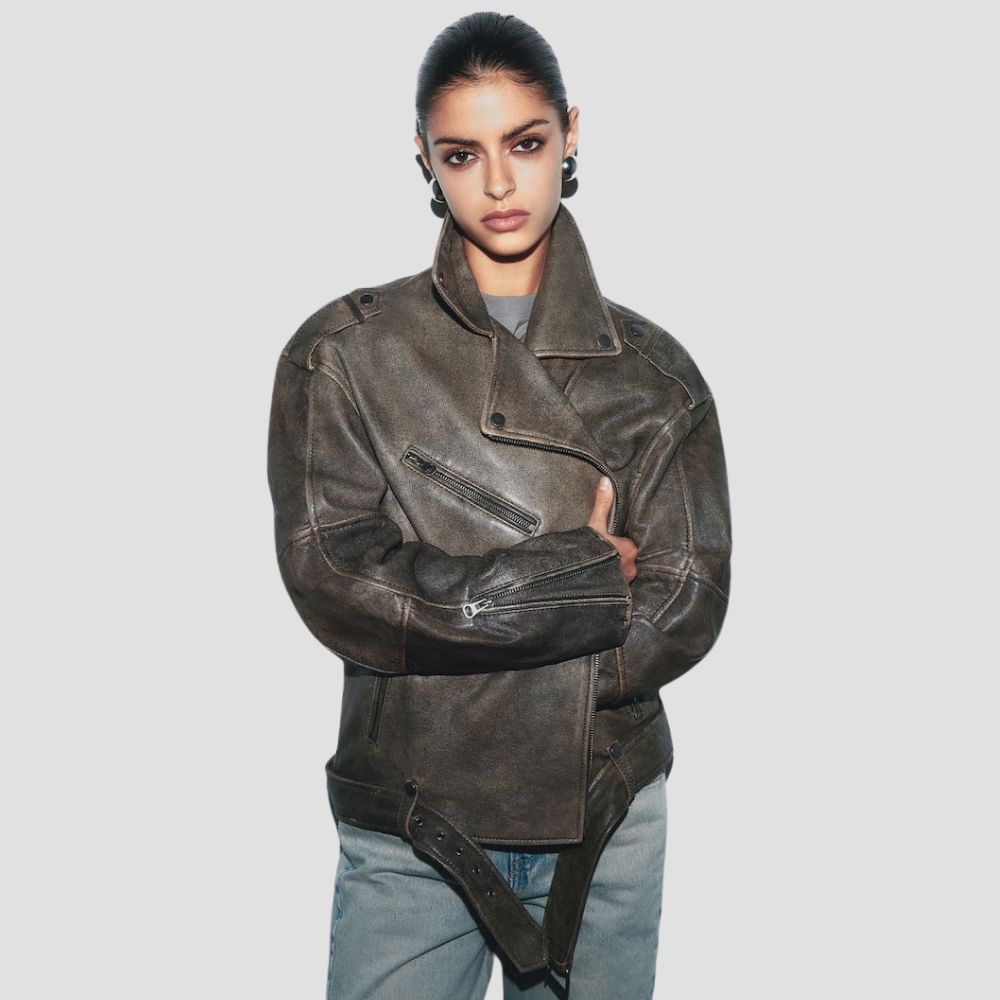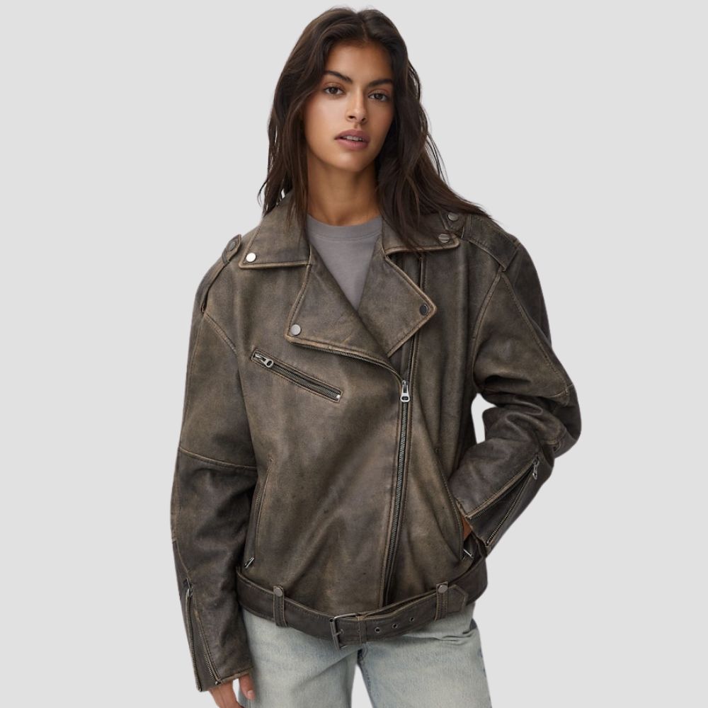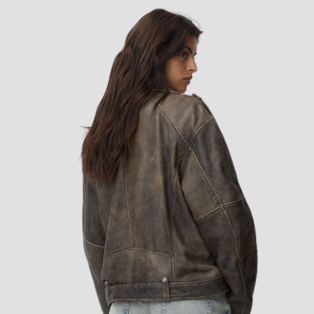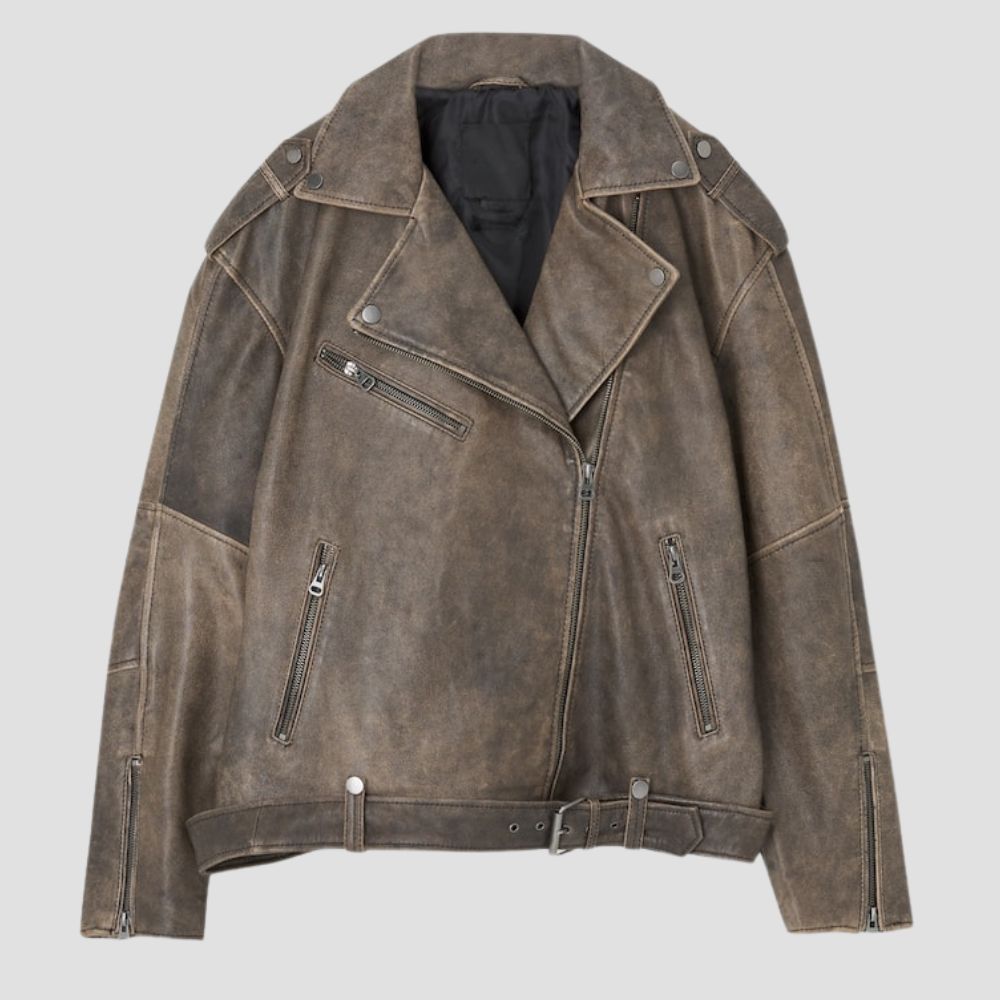 DistressedI Leather Biker Jacket