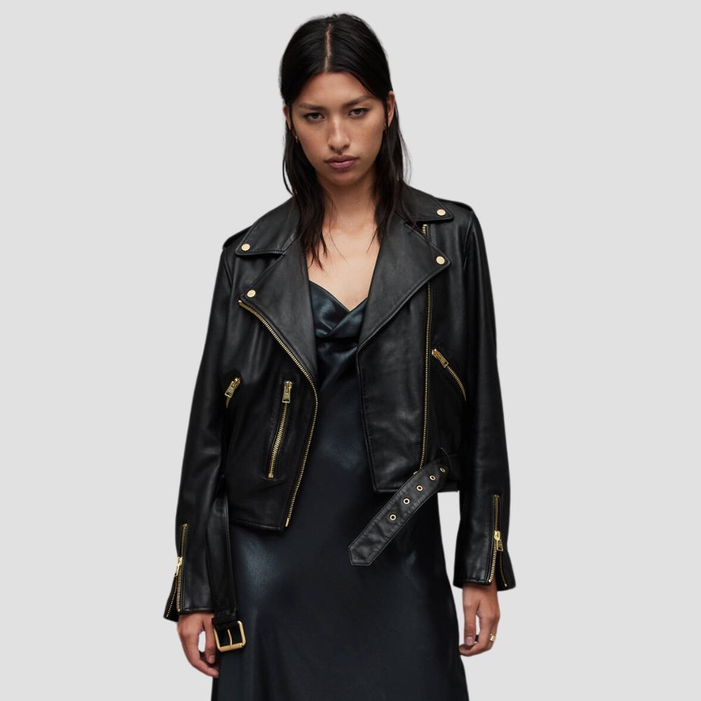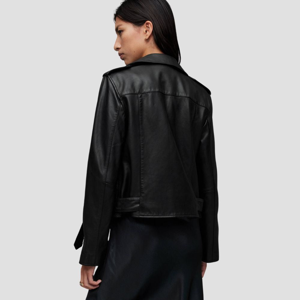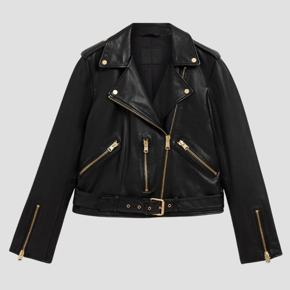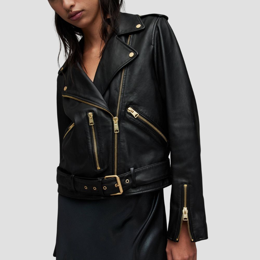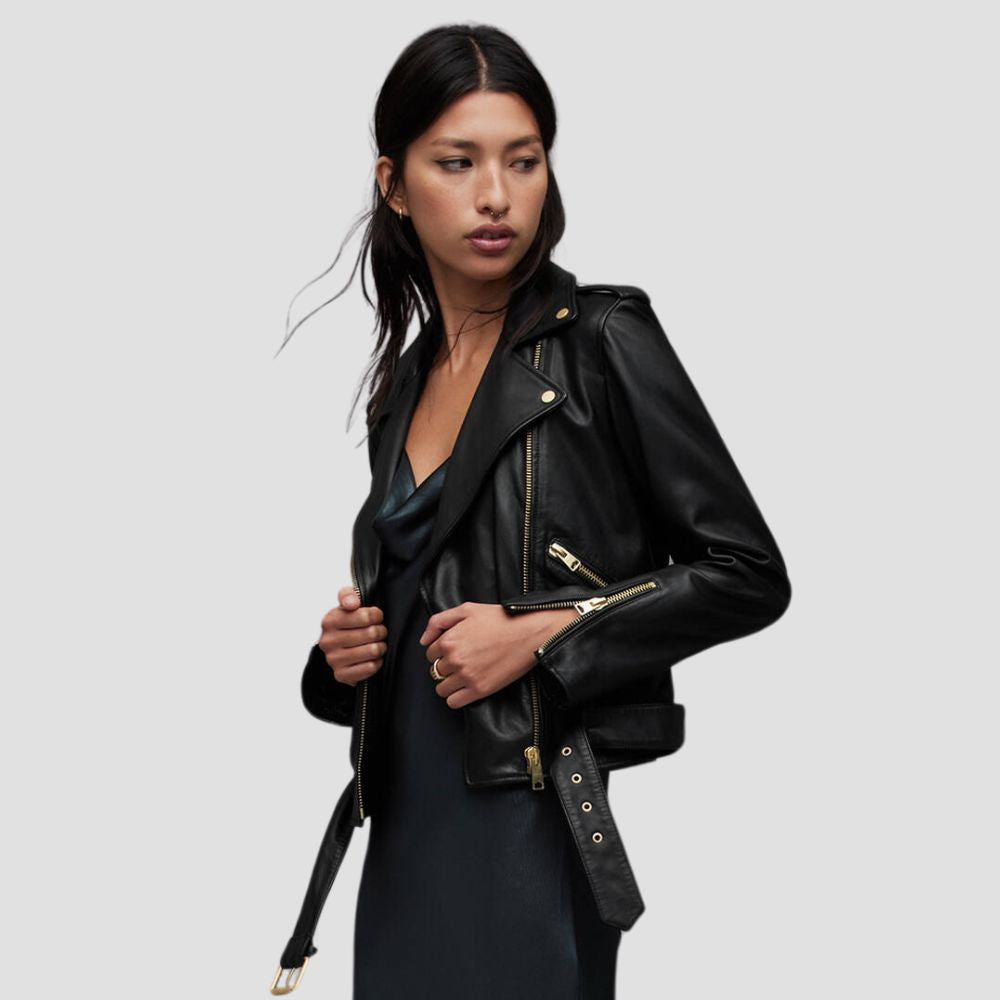 Balfern Belted Hem Leather Biker Jacket