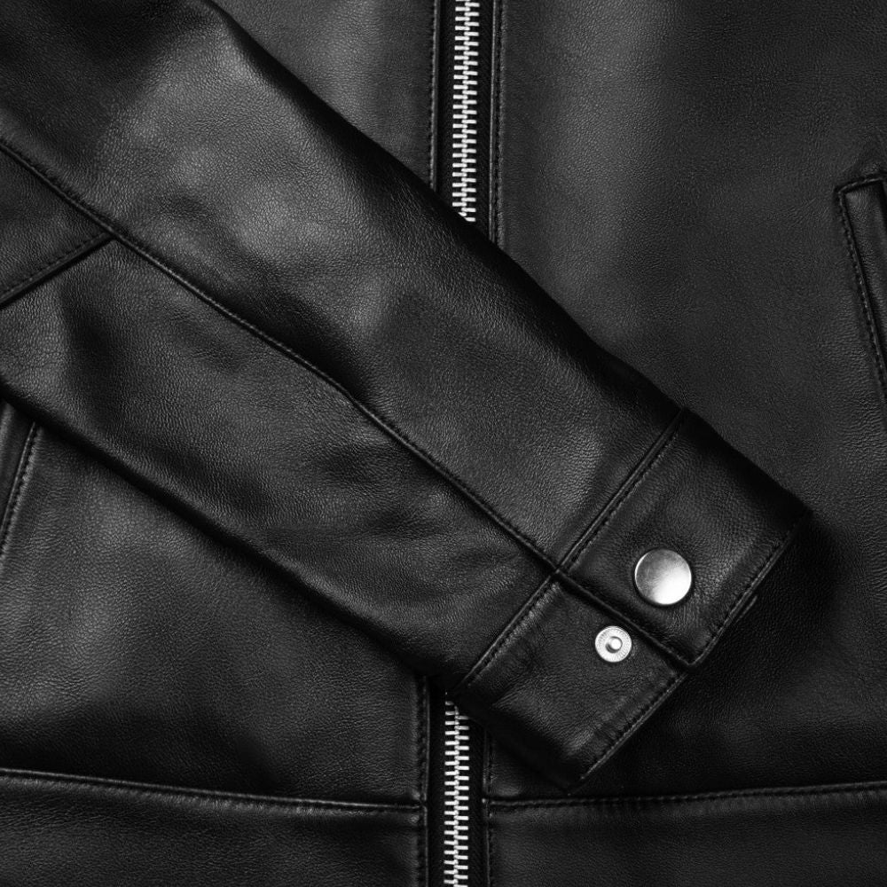 Description: Premium Black Lambskin LeatherPlush Polyester Interior with Leather TrimmingsLong Lasting Metal Zipper Banded Collar With Metal Snap ButtonTwin Side Pockets...