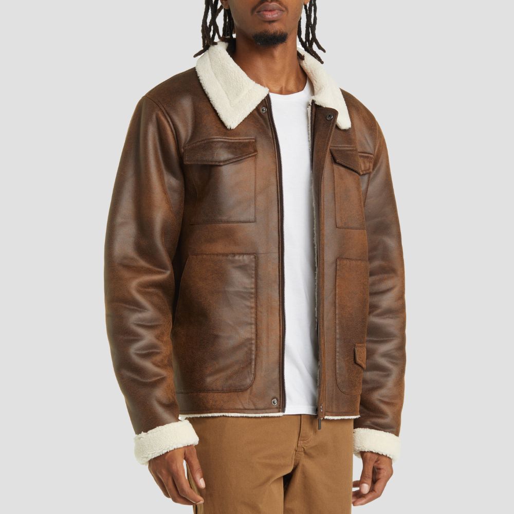 Description:Elevate your cold-weather style game in this vintage-inspired jacket made from soft faux leather and detailed with plush faux shearling trim....
