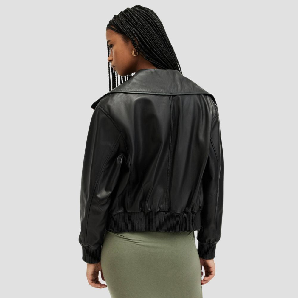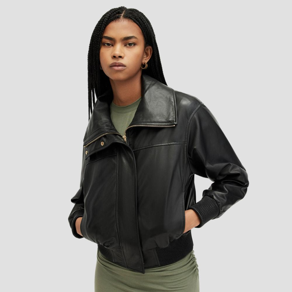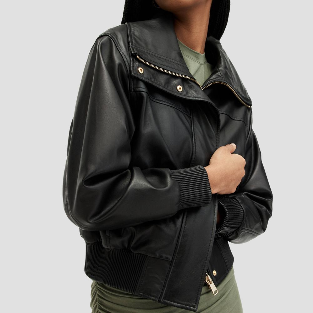 Etta Funnel Neck Leather Bomber Jacket