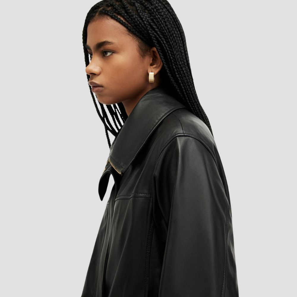Description: Leather, done differently. The Etta takes note from our Sloane Bomber and offers a modern shape with a funnel neck...
