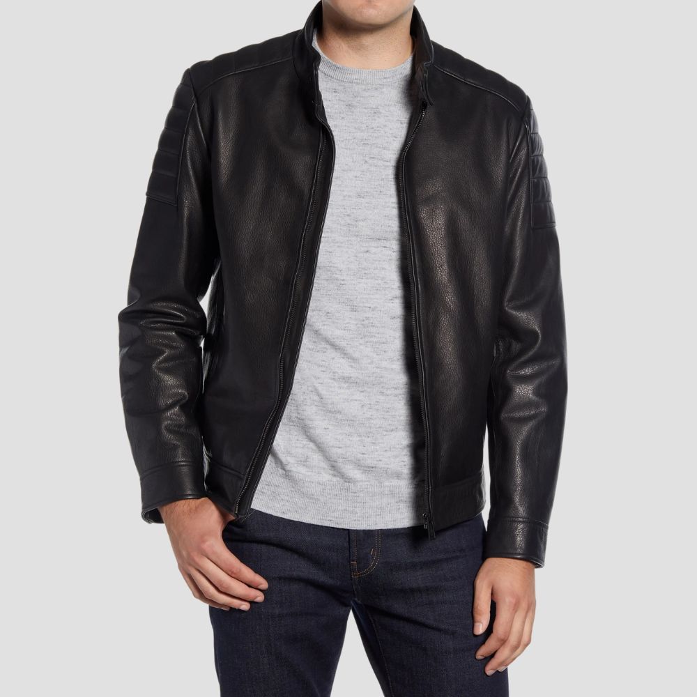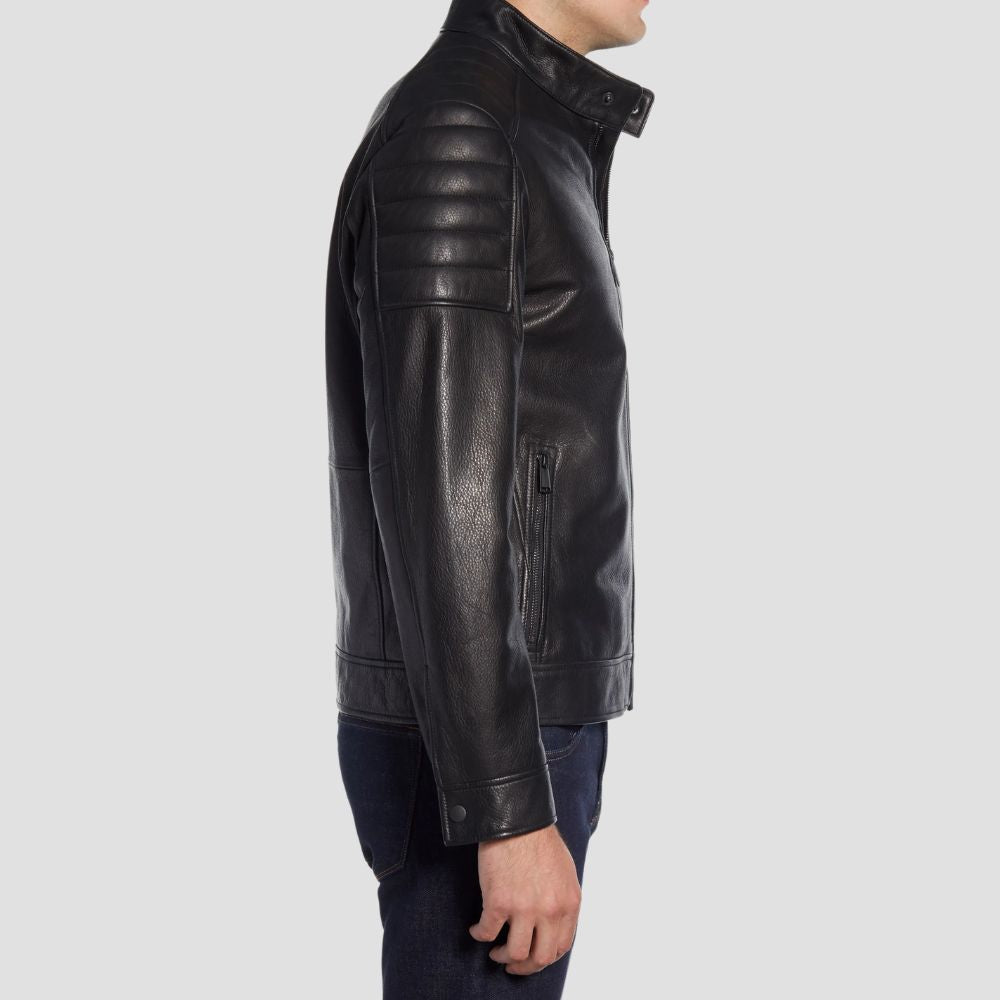 Details & careRichly textured Spanish leather defines a modern moto jacket topped with quilted shoulder panels. moto jacket topped with quilted shoulder...
