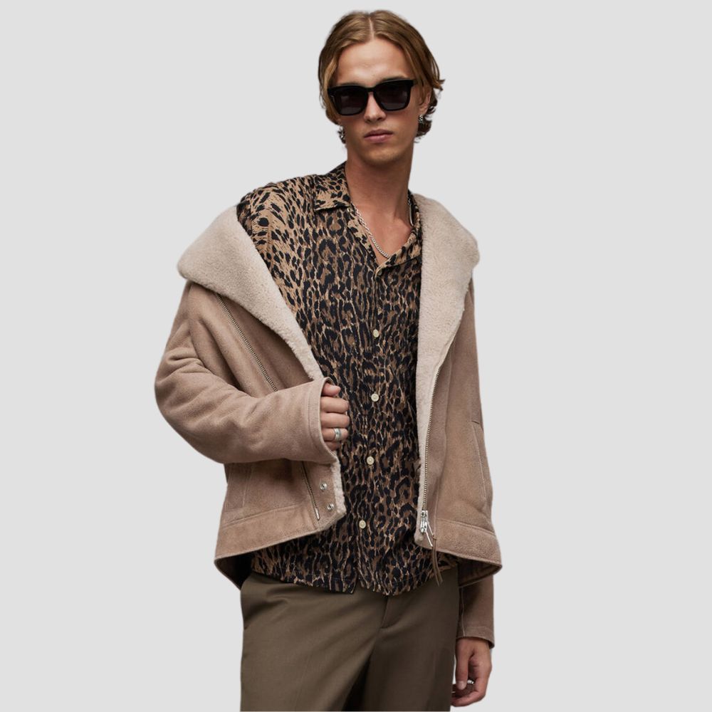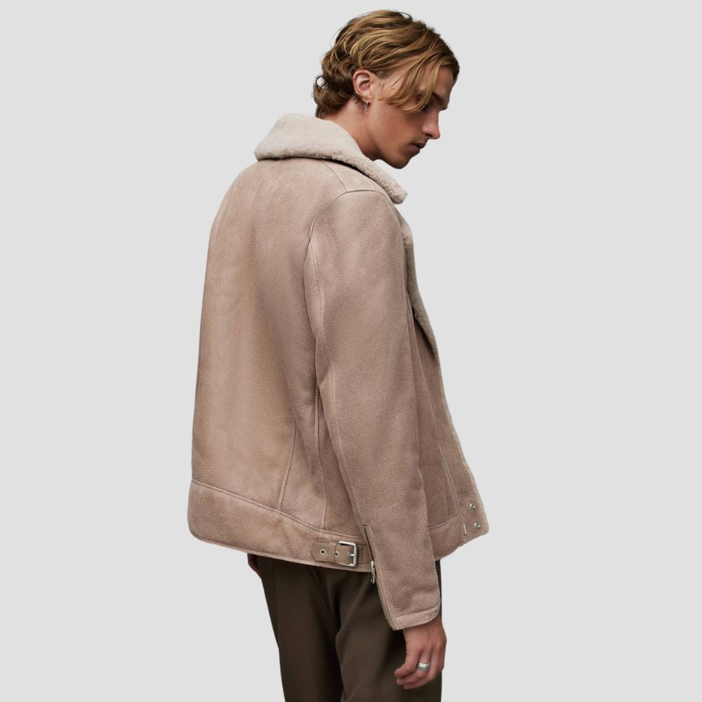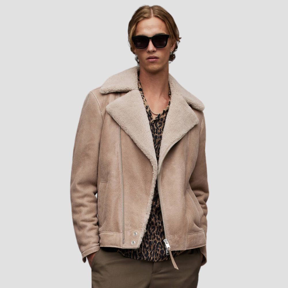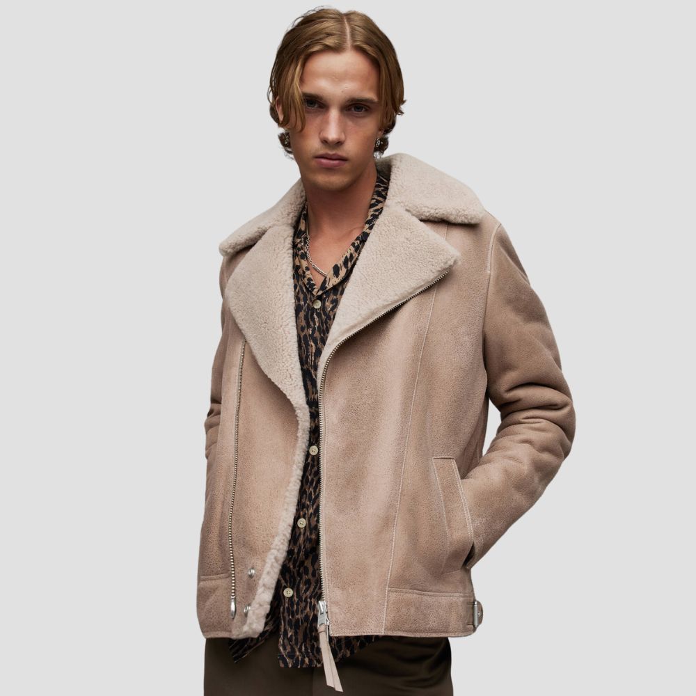 Description:A biker, but shearling. We love the Rasco Jacket, it's got a minimal look witha faded finish applied to the...