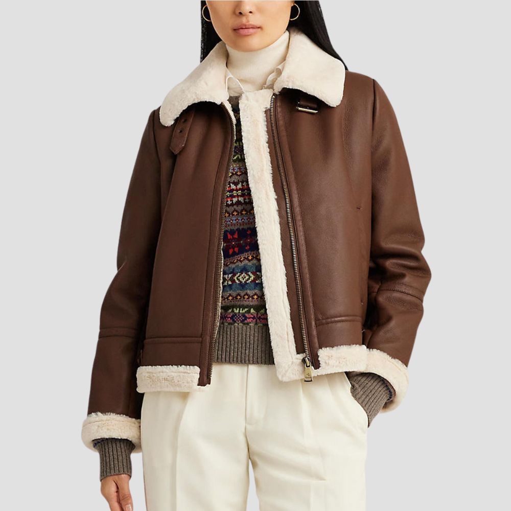 Shearling Trim Faux Leather Jacket
