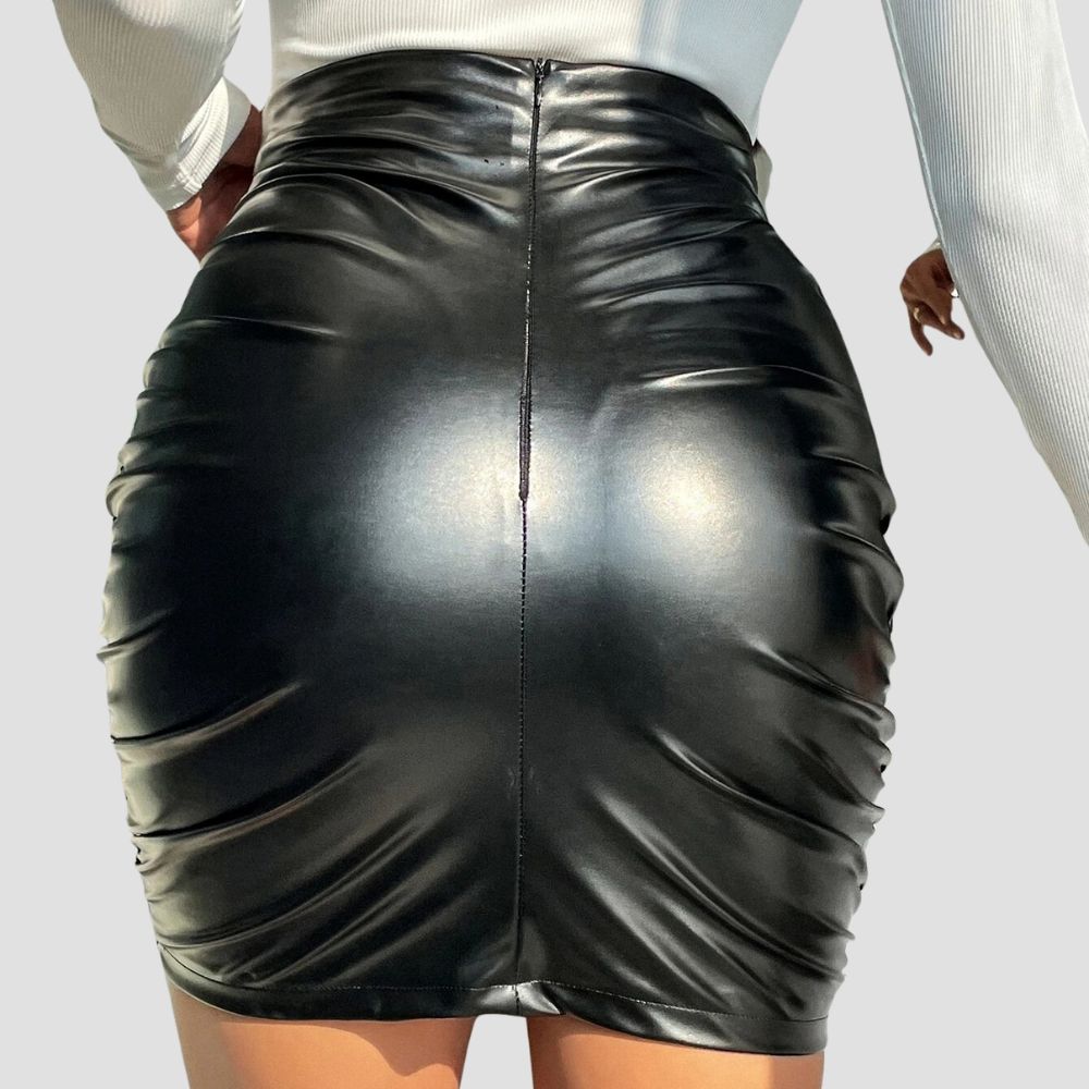 SHEIN Ruched PU Bodycon Skirt