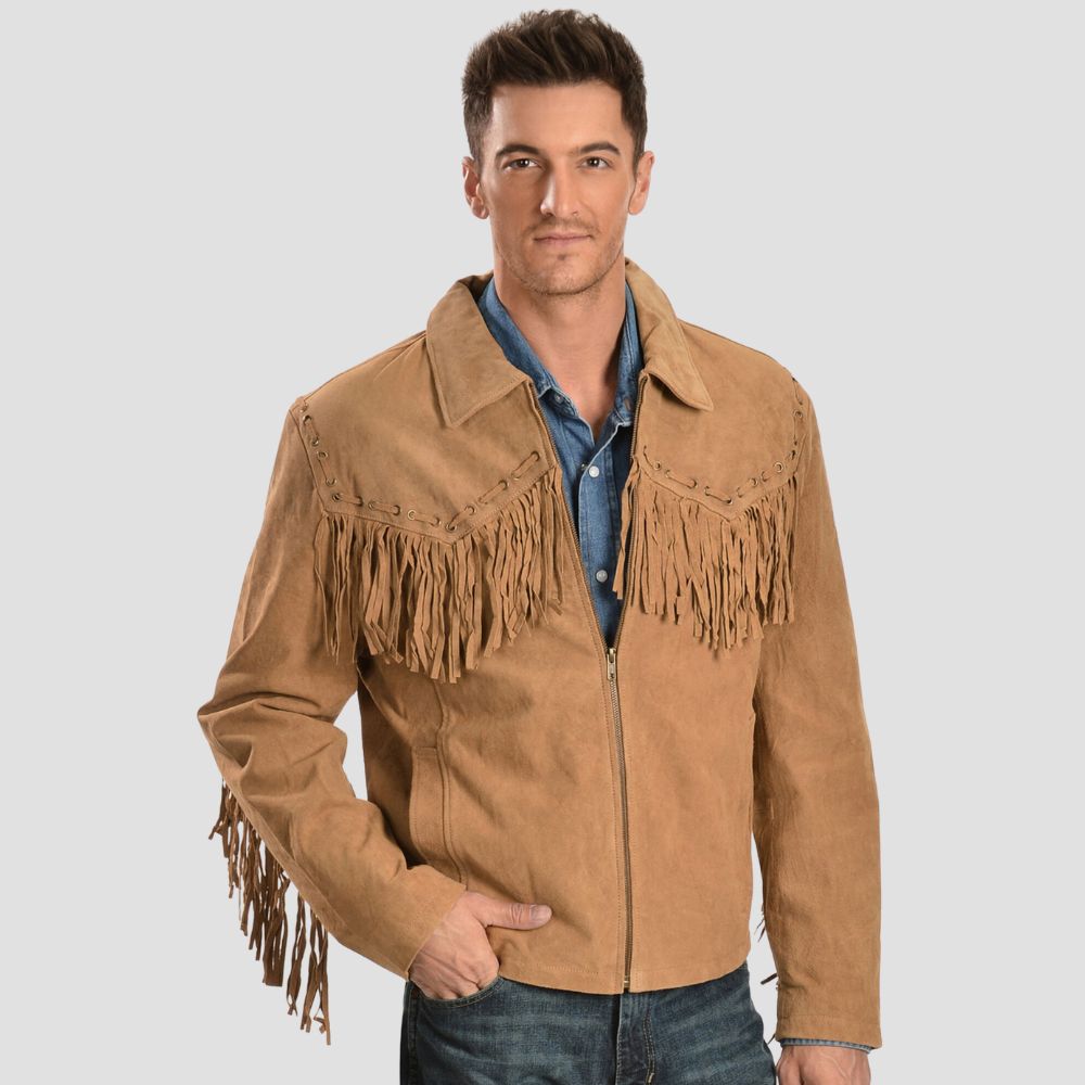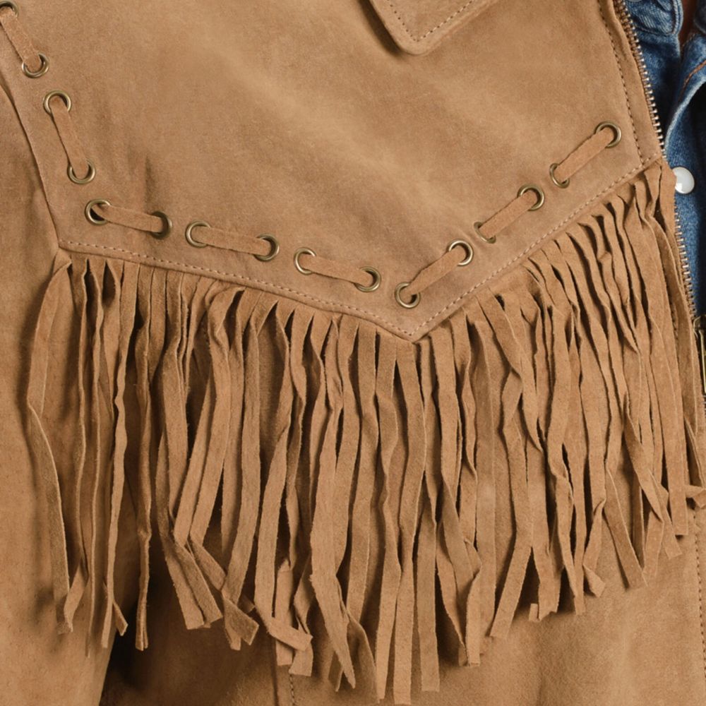 Description: Color: Brown100% suede leather / 100% quilted nylon liningSpread collartwo side entry pockets interior chest pocket Zip front closuresuede Leather fringe professional...