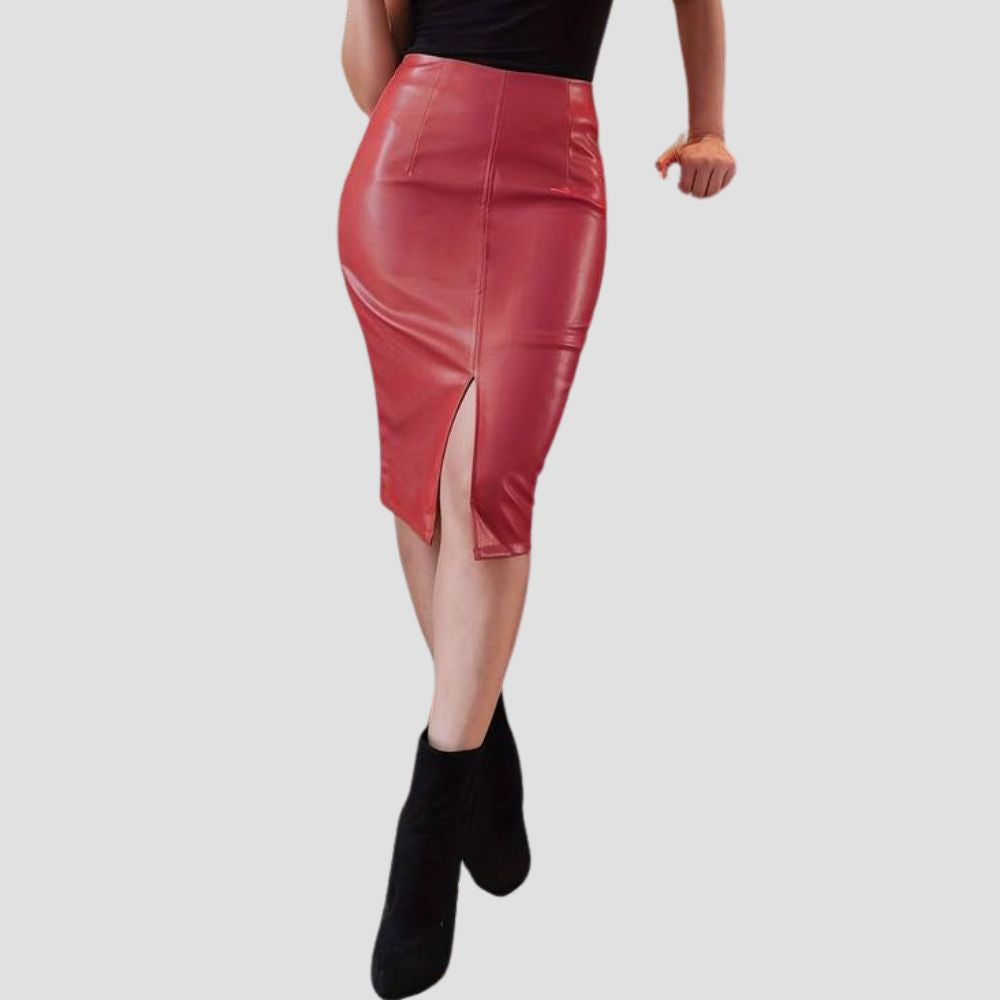 Faux Leather Split Pencil Skirts