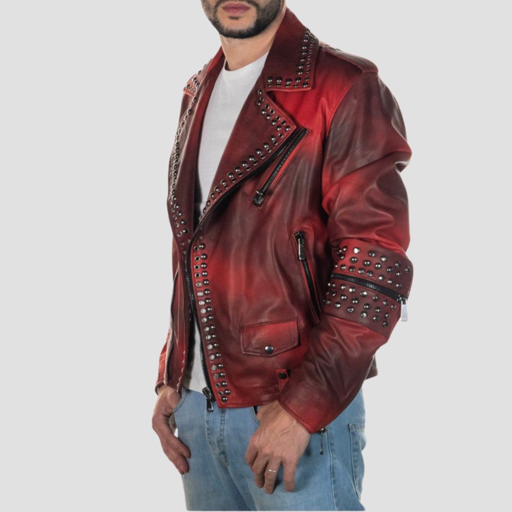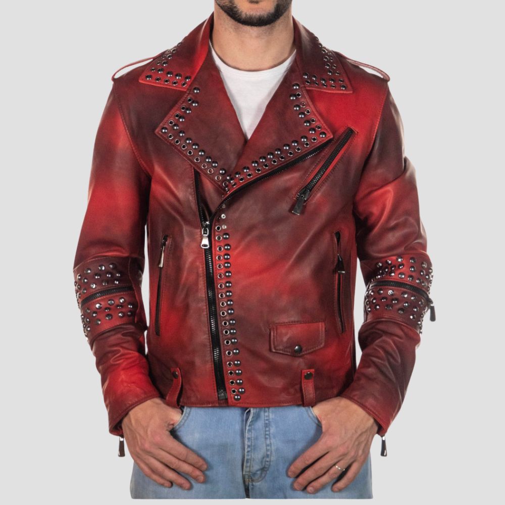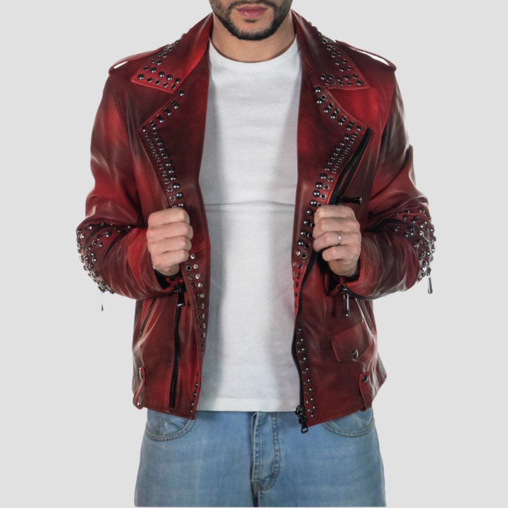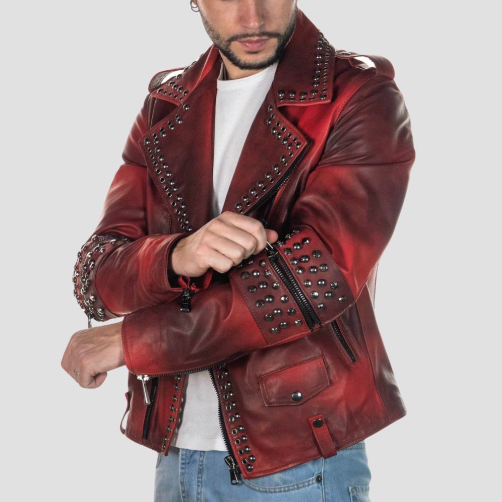 Description: The Vasco biker jacket is a bold and rebellious style statement. This uniquelydesigned jacket features studs on the front...