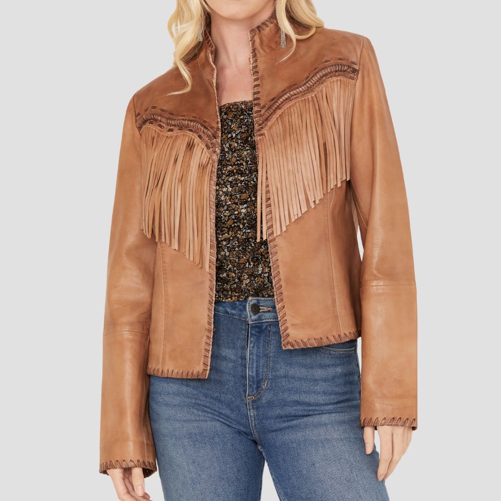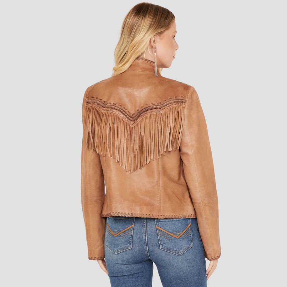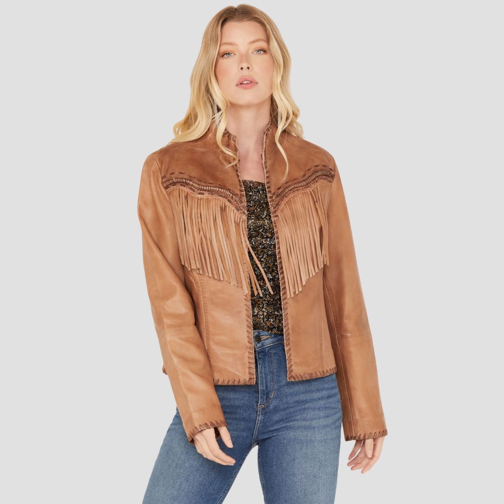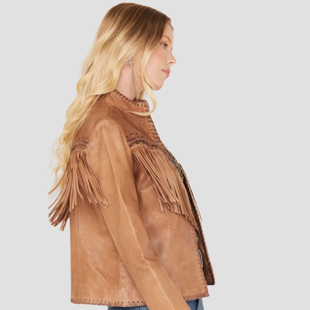 Women Daisy Leather Fringe Jacket